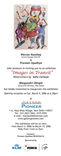 Sofia’s most successful solo exhibition was organized by Pioneer Gallery in New Delhi, India, in 2006. This show received significant publicity: First Cities magazine (4-11 March 2006) wrote about her work: “Sofia’s watercolour impressions of the places she’s traveled to immediately engage with their effervescence, as does the artist as she enthuses about her cross-continental travels (..). She talks about the moments captured by her fluid, fresh strokes of colour: a market place, women enjoying an afternoon’s siesta, the calming presence of a sea of monks, a doorway framed by creepers (..)”. Sofia’s work was also shown in group exhibitions in the Canadian High Commission and at the half-yearly sales exhibitions of the International Women’s Group in New Delhi (2004-2006).